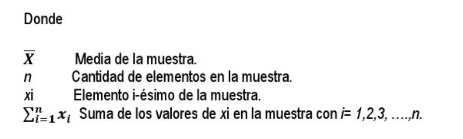 Es un conjunto de observaciones por medio de un valor individual que representa el “centro de gravedad” de los datos y es la suma de todas las observaciones divididas entre el número de observaciones. Fórmula: