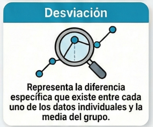 Es la diferencia que hay entre cada uno de los datos y la media del conjunto de datos.