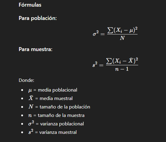 Representa una medida de dispersión que cuantifica la variabilidad del conjunto de datos elevando al cuadrado las diferencias respecto a la media.