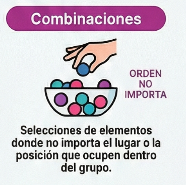 Son agrupaciones donde no importa el lugar o posición de los elementos