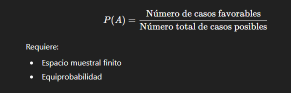 Probabilidad de que suceda un evento, calculada cuando todos los resultados son igualmente posibles.